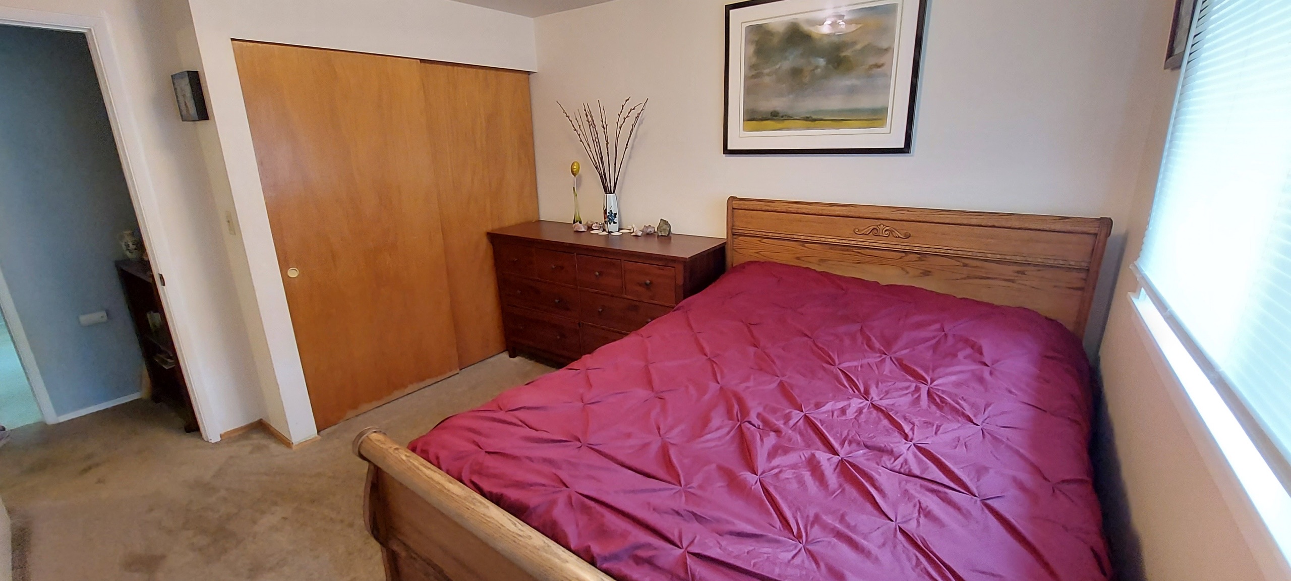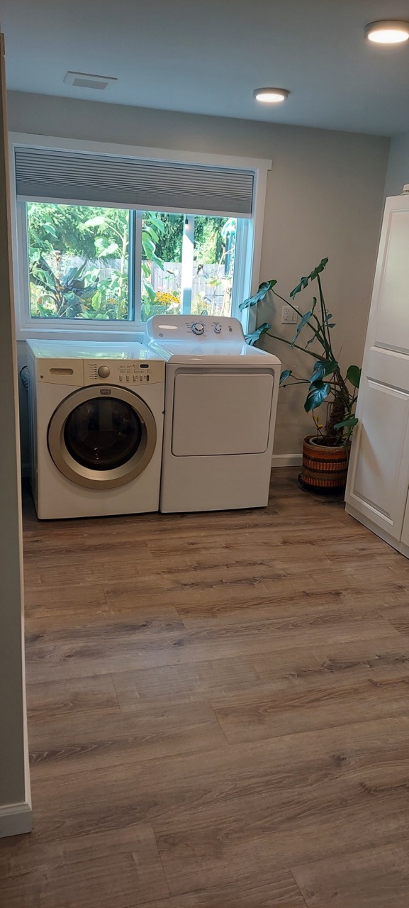 This duplex has two bedrooms and one bathroom available upstairs for guests. Guests have their own kitchen and separate entrance. Each bedroom has a queen size bed. There is WiFi available and guests can access the washer/dryer as needed, which is downstairs in the main host living space. There is also an above ground pool in the backyard. Note: no central heating or cooling is available in the unit. However, there is a gas fireplace, space heater, and portable a/c unit available to maintain comfort.
