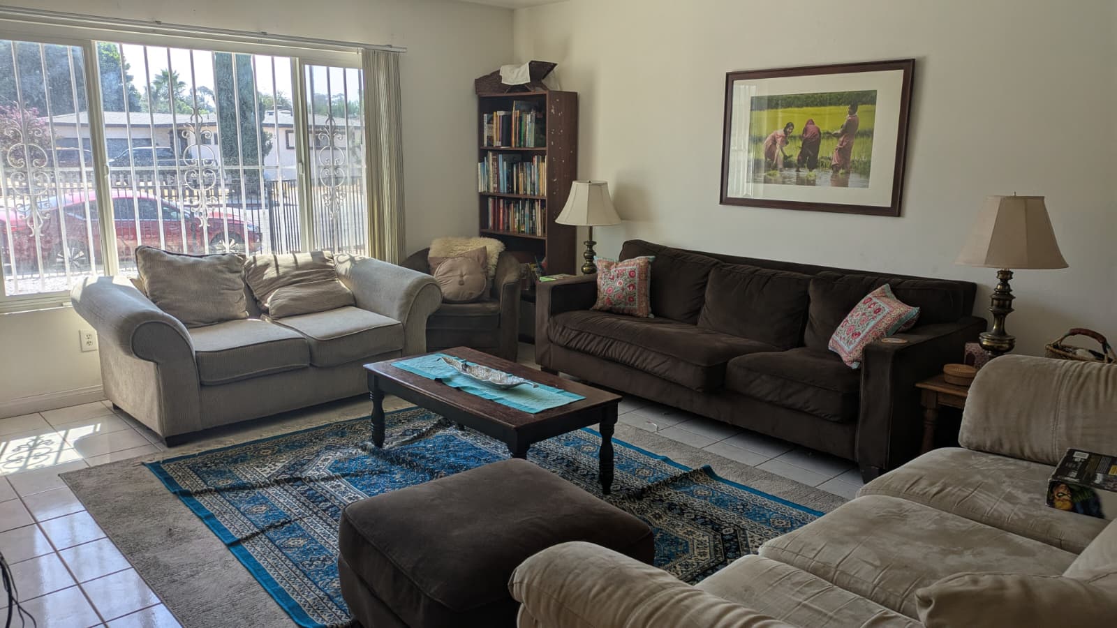 This single level home is in the heart of the immigrant community in El Cajon, CA. Close to freeway, stores, restaurants, churches, and mall. The main bedroom has a queen sized bed and attached bathroom. The other three bedrooms share a hall bathroom. Available for rent to missionary families for 2 weeks to 3+ months. The home has wifi, TV, laundry facilities, dishwasher, etc.