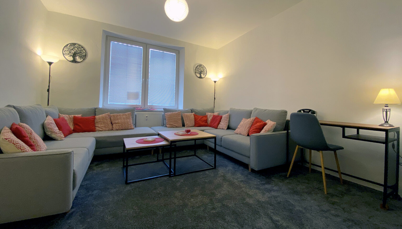This private apartment, with access to the main home's backyard and the beauty surrounding Olomouc, is a Garden Refuge — a place to rest in God and sense his love and provision. The bedroom and living room can sleep up to seven people combined. The apartment also includes a well-equipped kitchen and a bathroom with a shower. For clothes, there is a washing machine and a drying rack that guests can use in the apartment or outside. The first bedroom's bed can be used as a twin bed or expanded into a queen. The second bedroom is a living room with two couches, each of which expands to become a queen-sized bed. Those with little ones are welcome to borrow a pack-and-play crib, baby bathtub, high chair and toys. For young and old we have games, puzzles, books, & access to our garden which includes a playground, seating area and a grill.