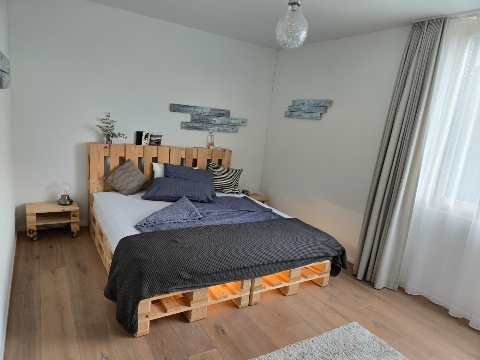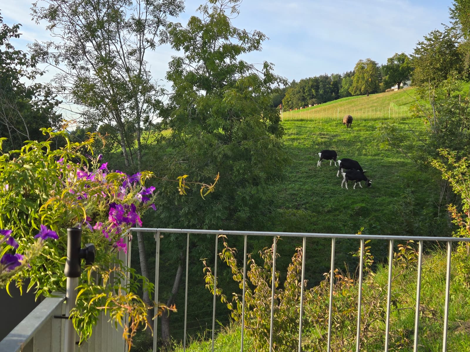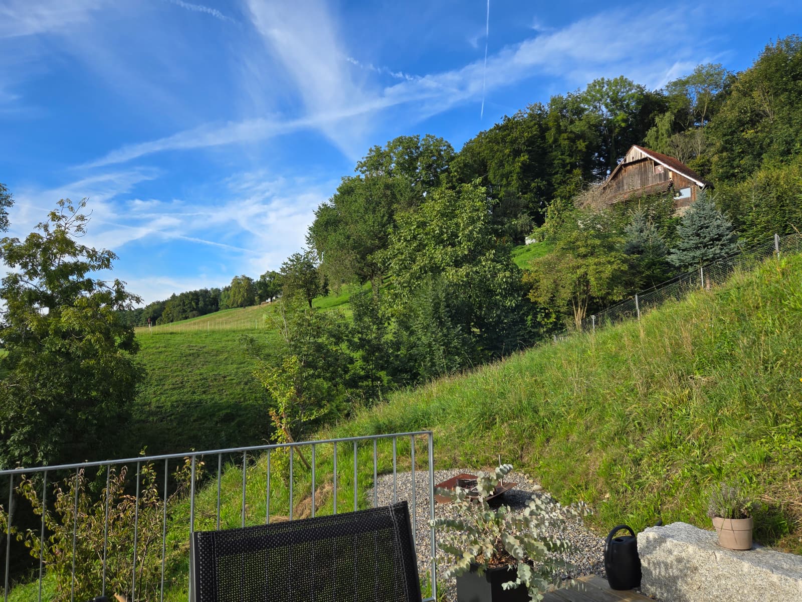One bedroom with a king size bed and attached bathroom. Guests will have access to the kitchen, laundry facilities, and internet. Beautiful back patio view of the countryside.